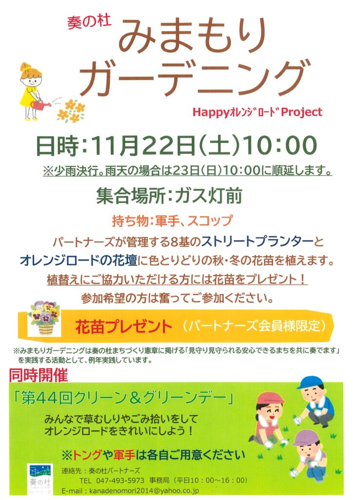 11月22日(土)10時より オレンジロードで花の植替えを行います。ぜひご参加ください♪